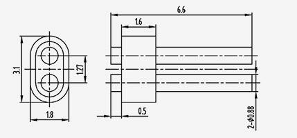 | 2-JD3012230-0,6(10,8-5)18 | 10.8 | 5 | 3 | 12.2 | 3 | 1.27 | 0.6 | 1.5 | 18 | 2 | Alt iç iletken tarafı düzleştirilmiş bağlantı |